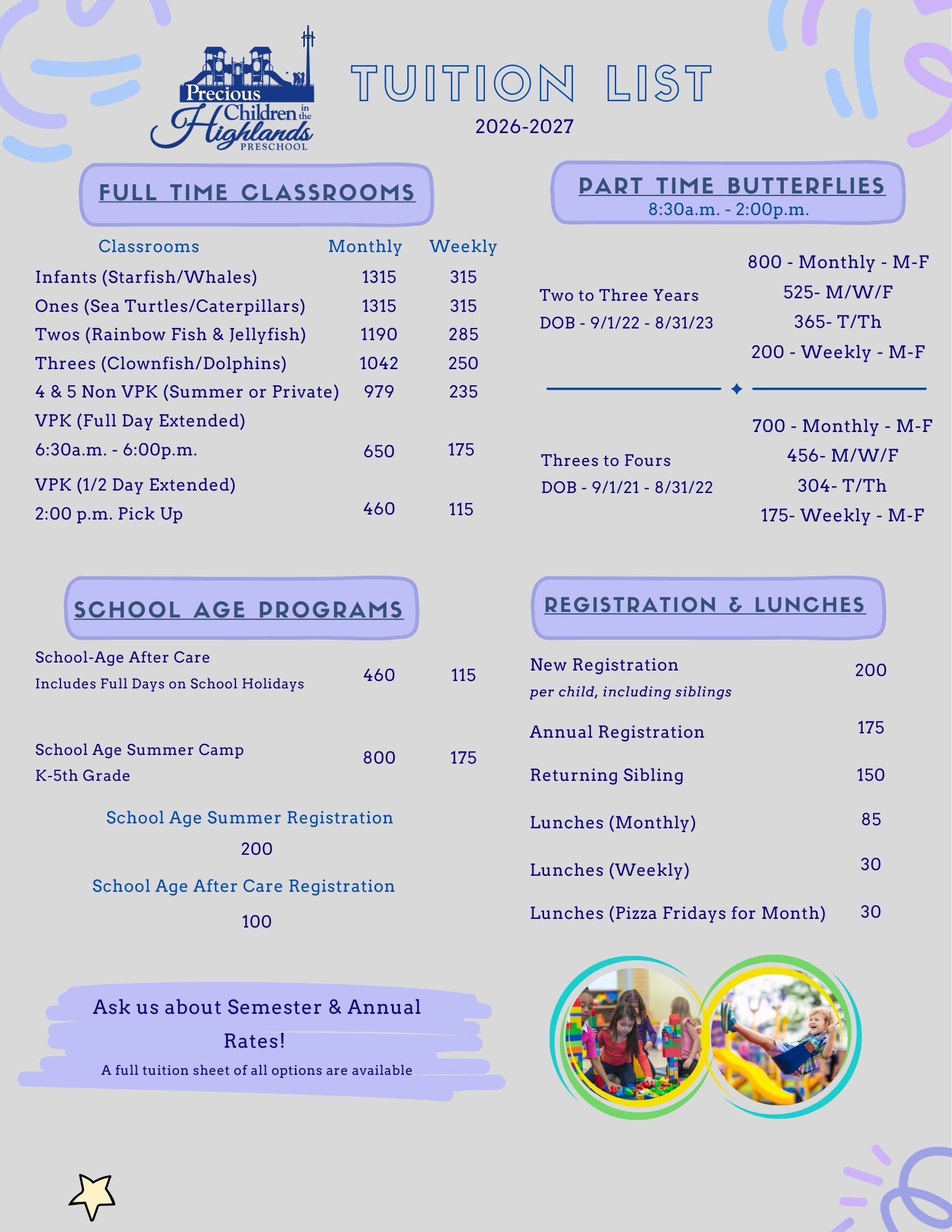 Your child’s enrollment in PCH preschool provides financial support for worship and other ministries in our church. These financial contributions allow us to remain active in the community through local missions and outreach. We are grateful to you and your family. Thank you!